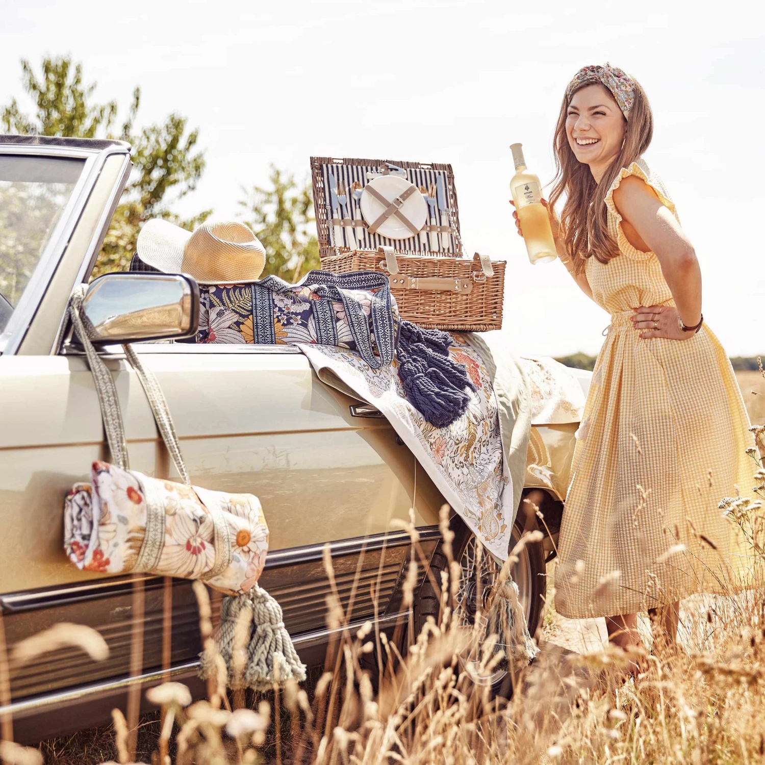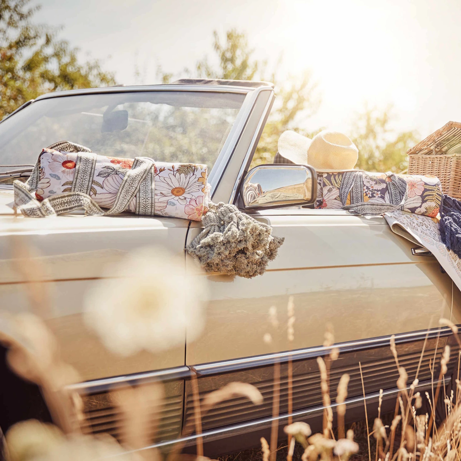 Picknickdecke L 175 X B 154cm BETWEEN FLOWERS In Dunkelblau